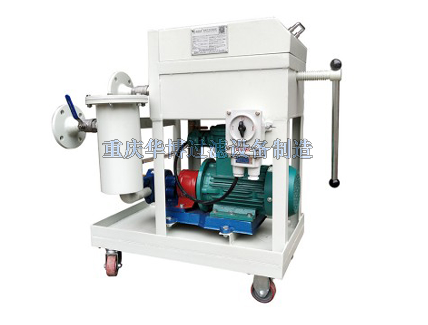 板框式滤油机由电动机直接带动油泵转动将油池中油液吸入初滤器除去大的颗粒杂质、进入油泵,在齿轮泵的压力下,将油液输入滤床过滤,油品通过滤纸或者滤布最后汇集到出油口输出。安全阀是该机的保证装置,能自动控制压力,保证设备安全;回油阀能控制油盘中的油面高度,防止油液从油盘中溢出;油样阀供取油液标样之用。