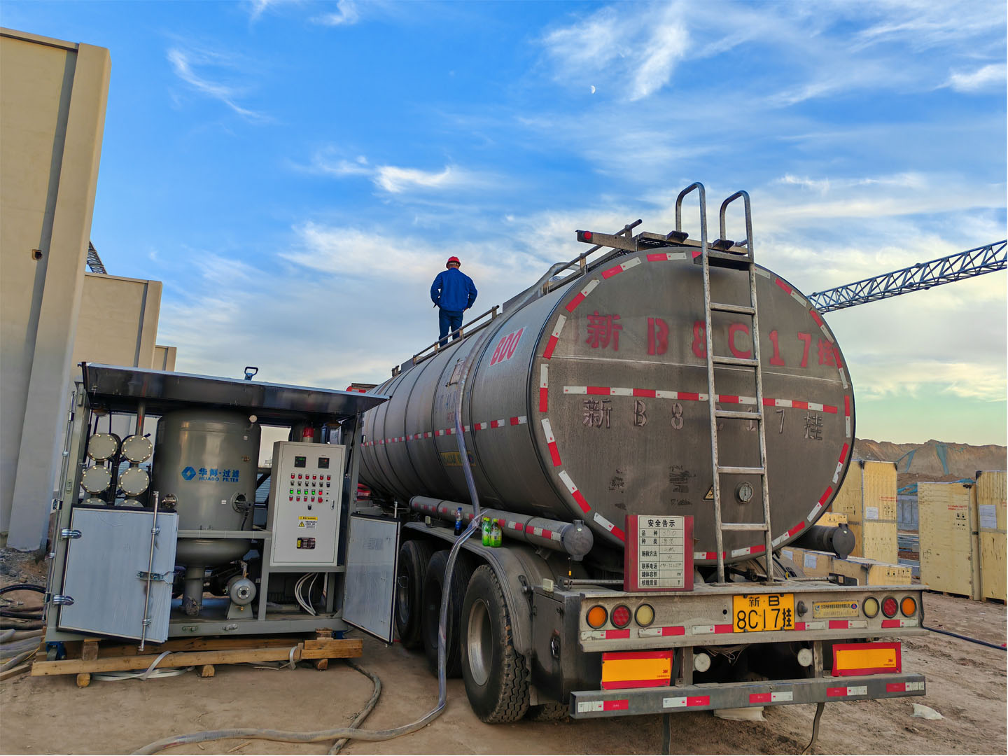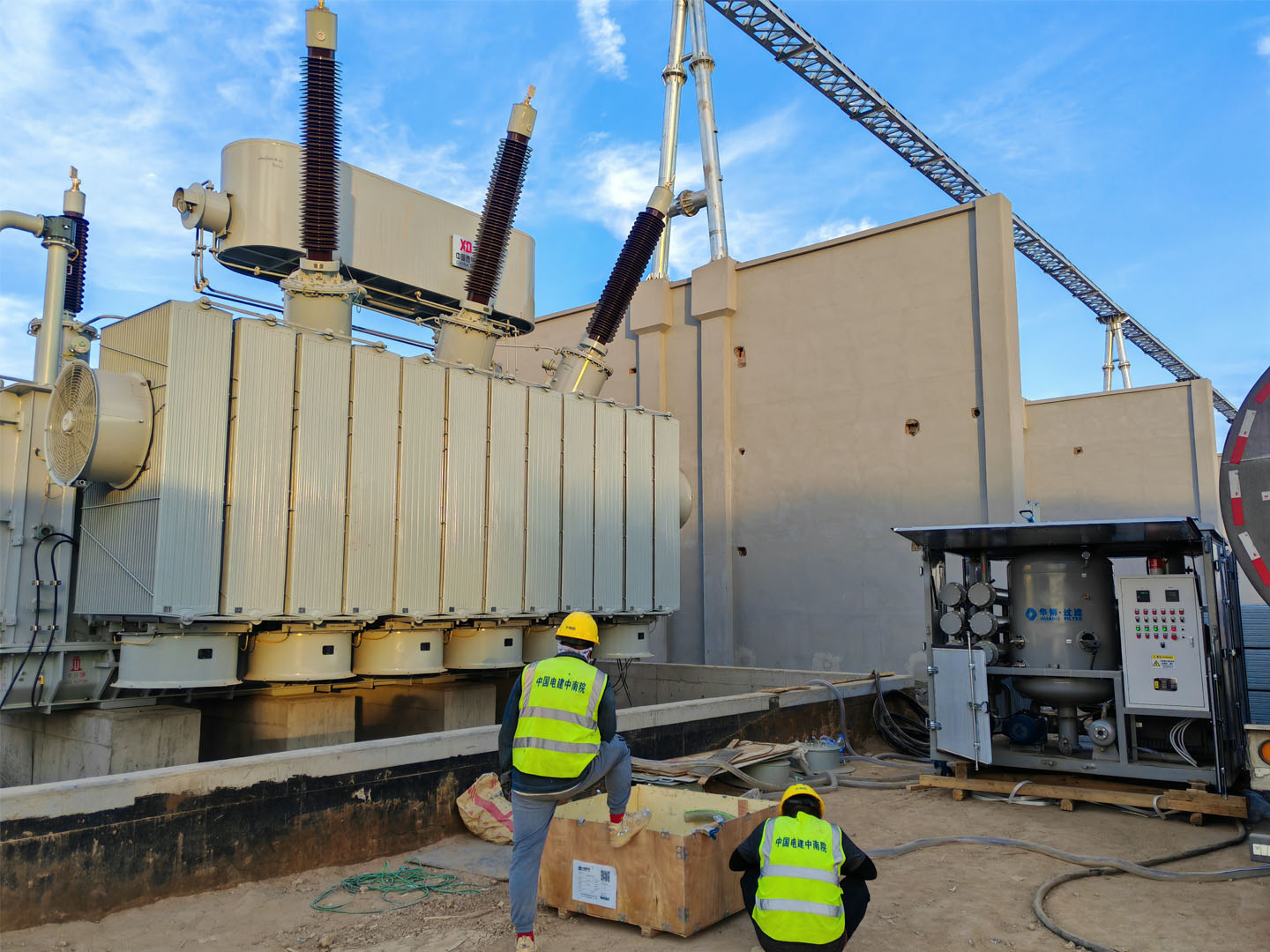 中国电建新疆甘六项目采购我公司12000L每小时变压器真空滤油机,1000立方每小时真空抽气机组,变压器为中国西电220KV,经过浴血奋战10台主变完美收官,客户高端赞赏!